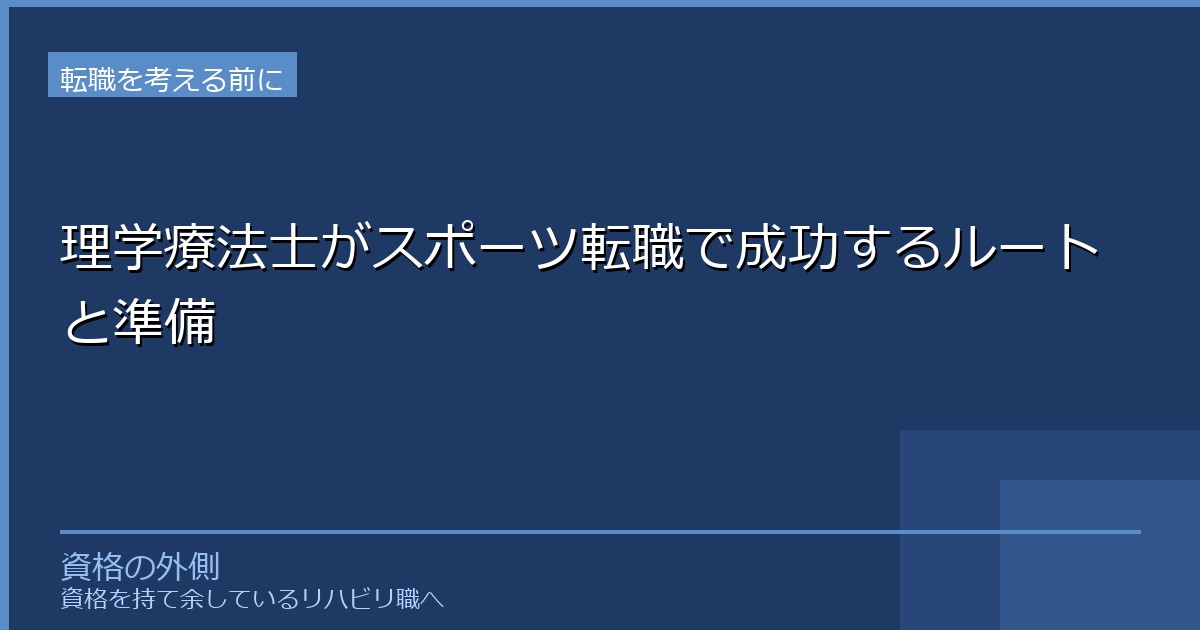 理学療法士がスポーツ分野への転職を考えるとき、最初にぶつかるのは「どこから動けばいいか分からない」という壁だ。求人の探し方も、必要な資格も、年収の現実も、断片的な情報しか手に入らない。