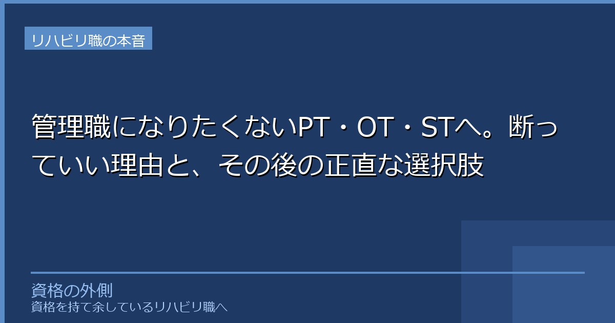 管理職になりたくない。その感覚は、PT・OT・STの多くが抱えている。でも「断っていいのか」「断ったらどうなるのか」と問い続けながら、誰にも相談できずにいる。